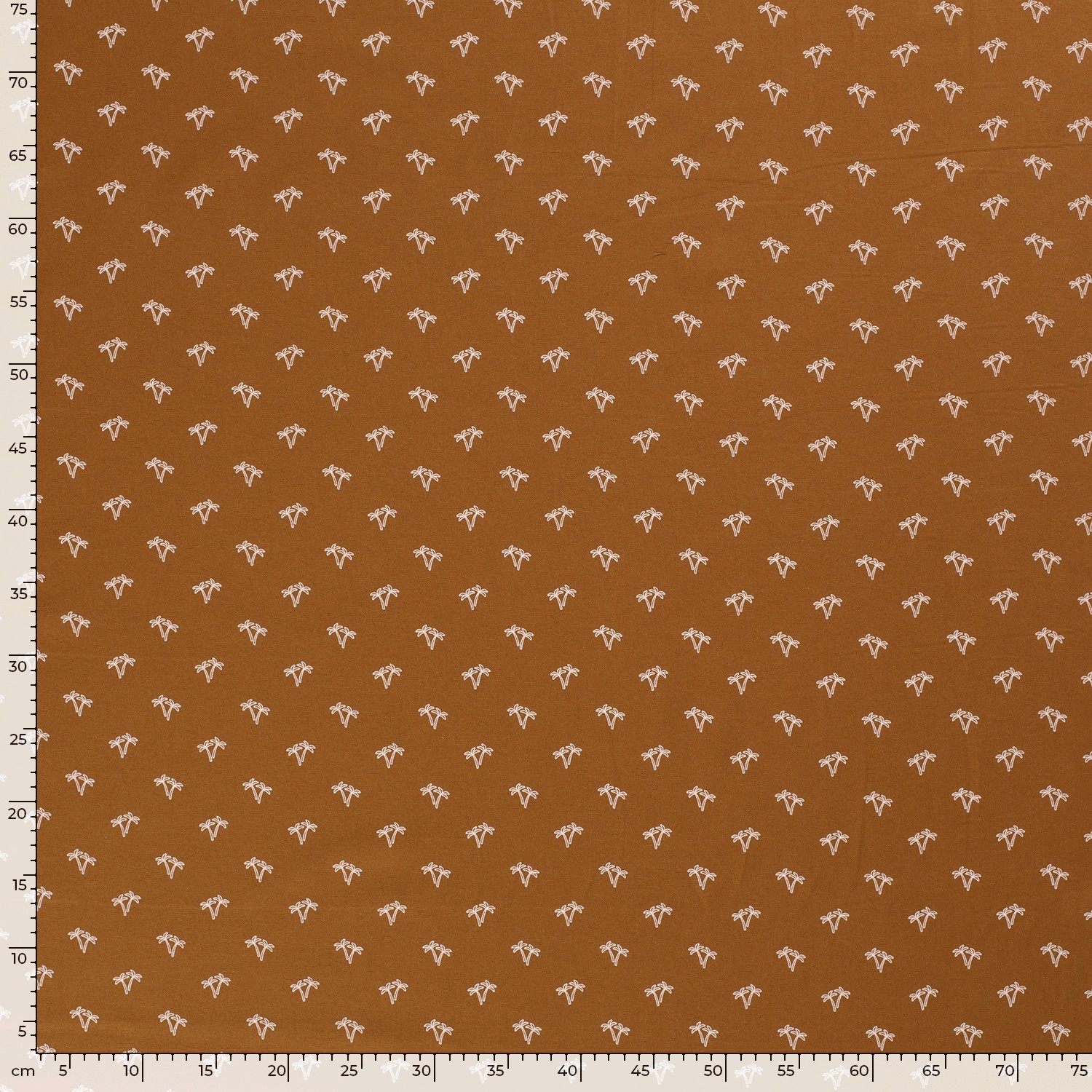 - Tropische Print: De stof heeft een aantrekkelijke tropische print met gedetailleerde palmbomen, die een zomerse en vrolijke uitstraling geeft. De karamelkleurige achtergrond accentueert de groene tinten van de palmbomen, waardoor een harmonieuze en opvallende combinatie ontstaat. Deze print is perfect voor het creëren van een speelse en stijlvolle look.