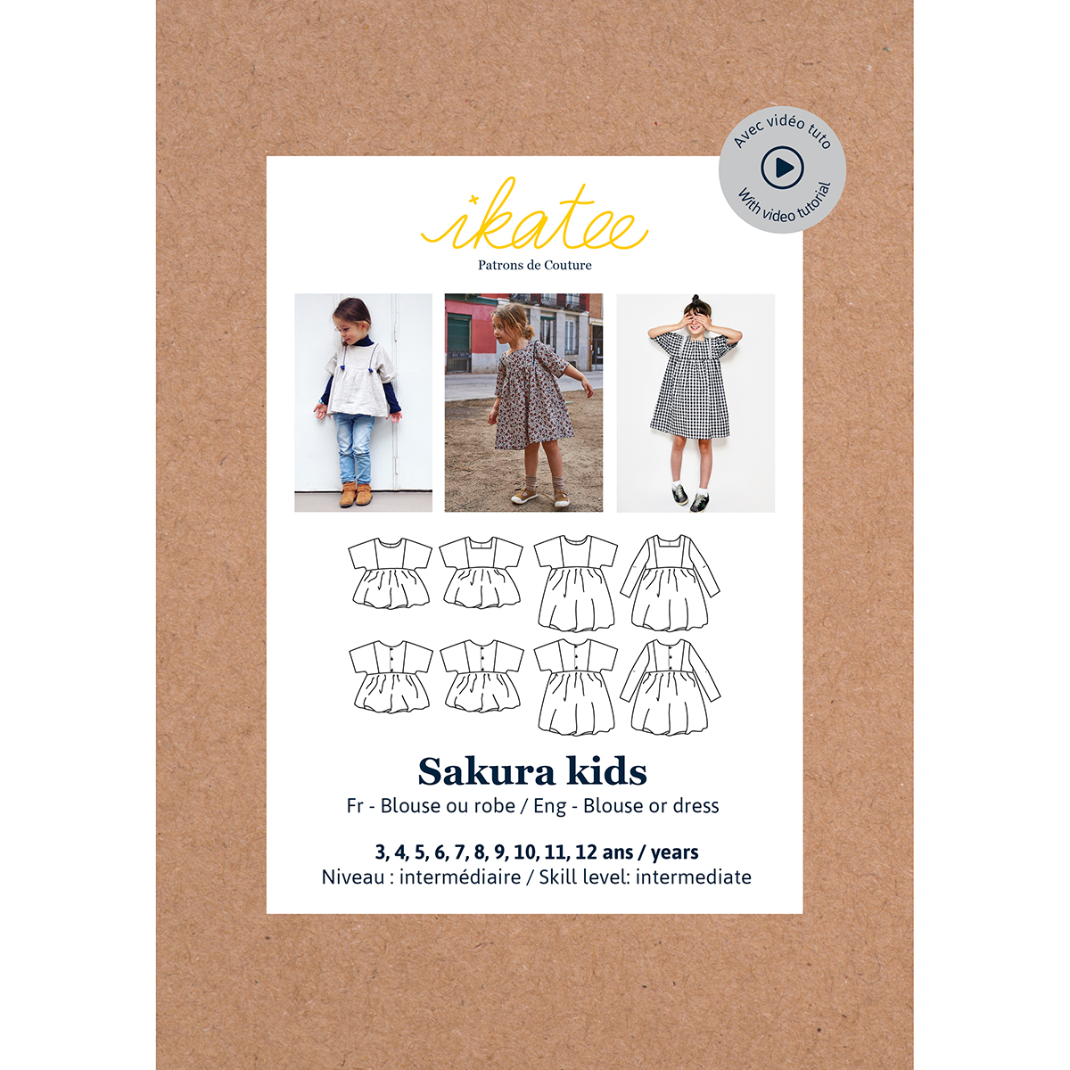 Wat je leert met deze patronen: een beleg maken, een rok rimpelen, een knoopsluiting maken, eventueel een bies, kant of ladder dagband, Franse naden maken. Een volledige video is beschikbaar op ikatee.com
