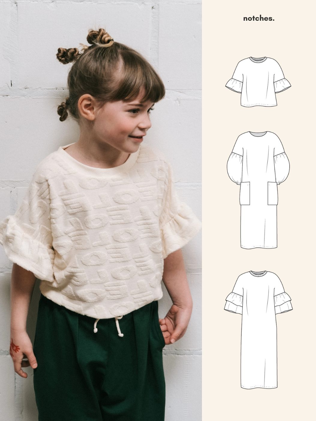– De varianten die bij dit papieren patroon worden aangeboden, kunnen afwijken van de varianten bij het digitale Notches-patroon.